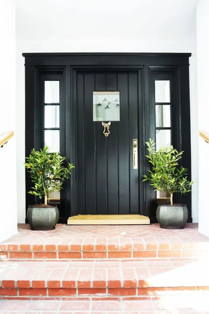 I love the look of this modern fall porch with its pops of green against the crisp black door and white trim. When it comes to color for your modern front porch ideas a modern color scheme typically reflects a clean calming look and feel. If you have a larger porch try having tall symmetrical plants on both sides of your door.